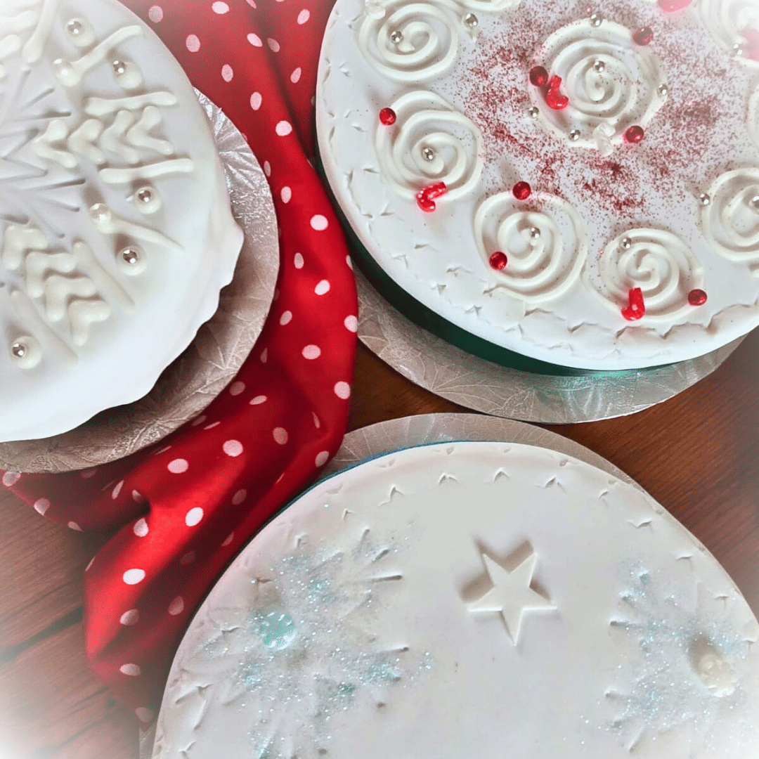 Exquisitely Iced with Marzipan and Pettinice, or with a Glace Fruit finish.