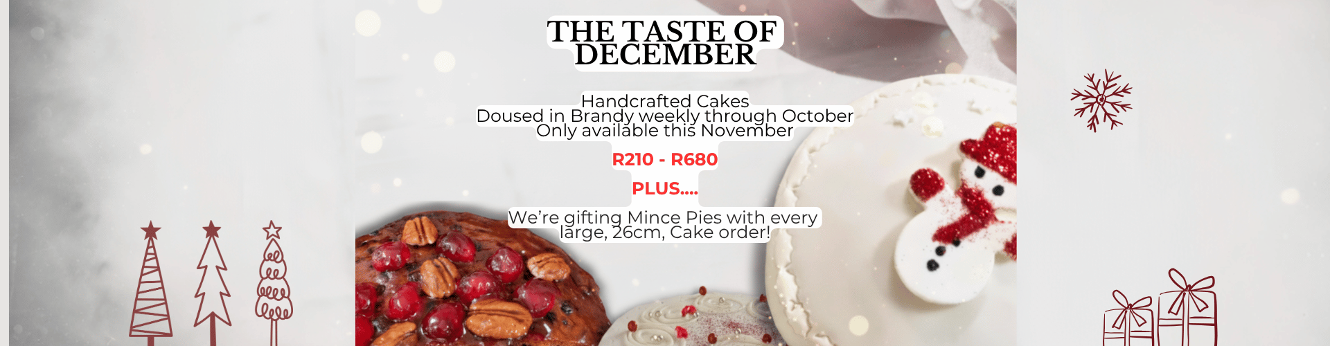 PLUS - order a 26cm Cake and we'll GIFT a portion of our cocktail Mince Pies xxx