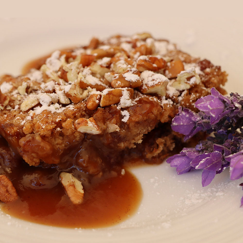 Scrumptious served with cream, custard, vanilla crème fraîche, full cream yoghurt, or ice cream.