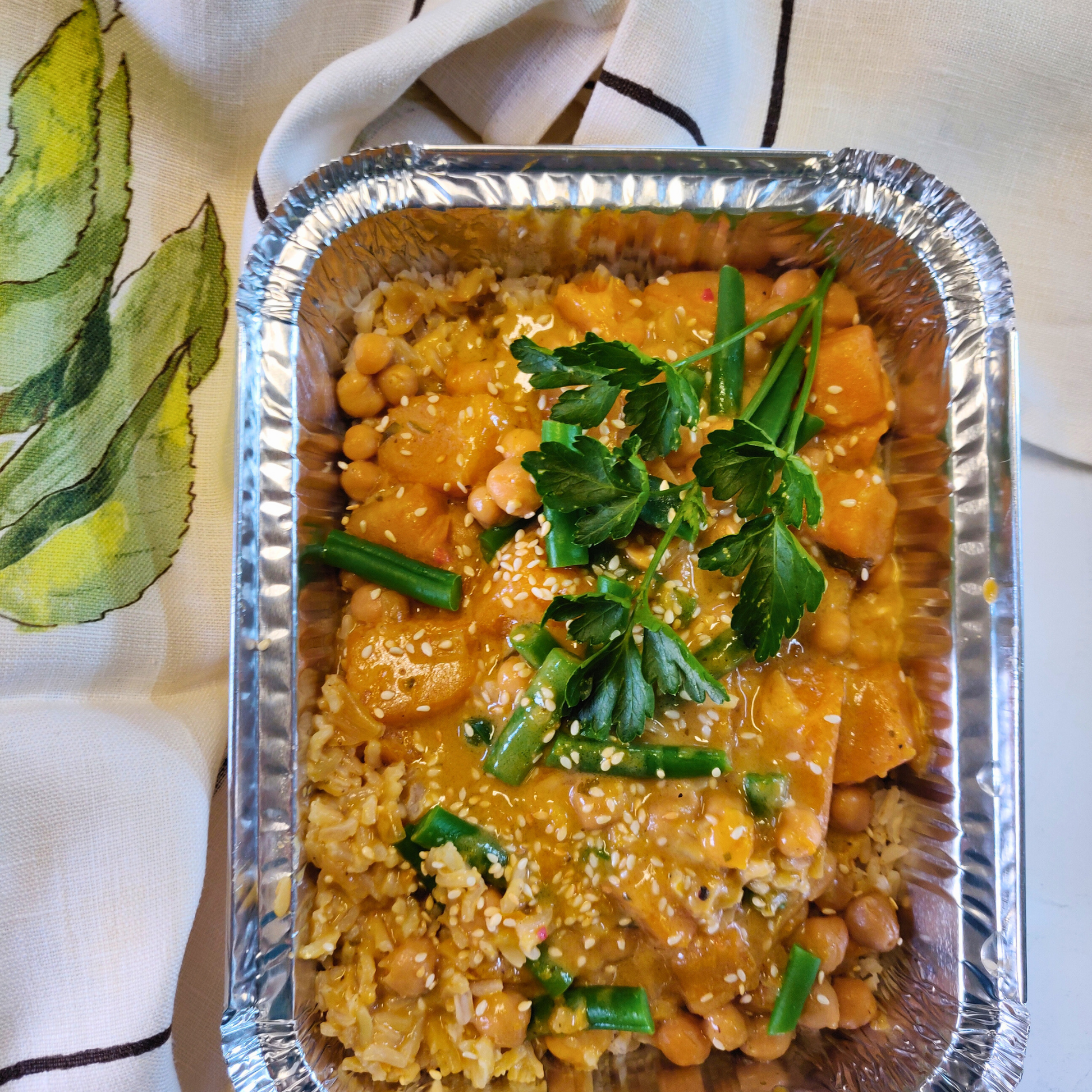 Savour our Satay Pumpkin and Chickpea Casserole, a delicious blend of Indonesian flavours, suitable for vegans. High in fiber and full of taste with a slight chilli kick - this meal is perfect as a complete meal in one or as a veg side.