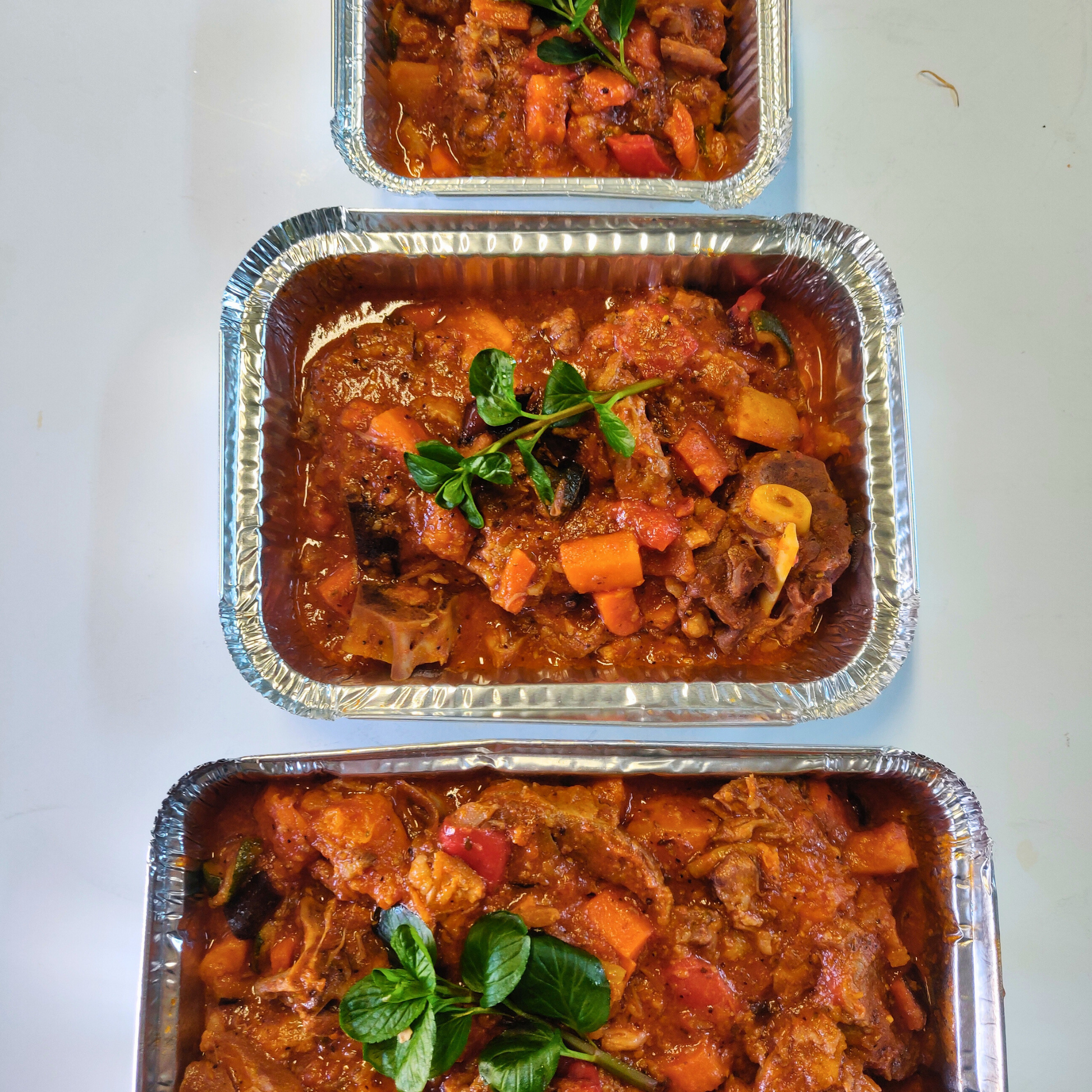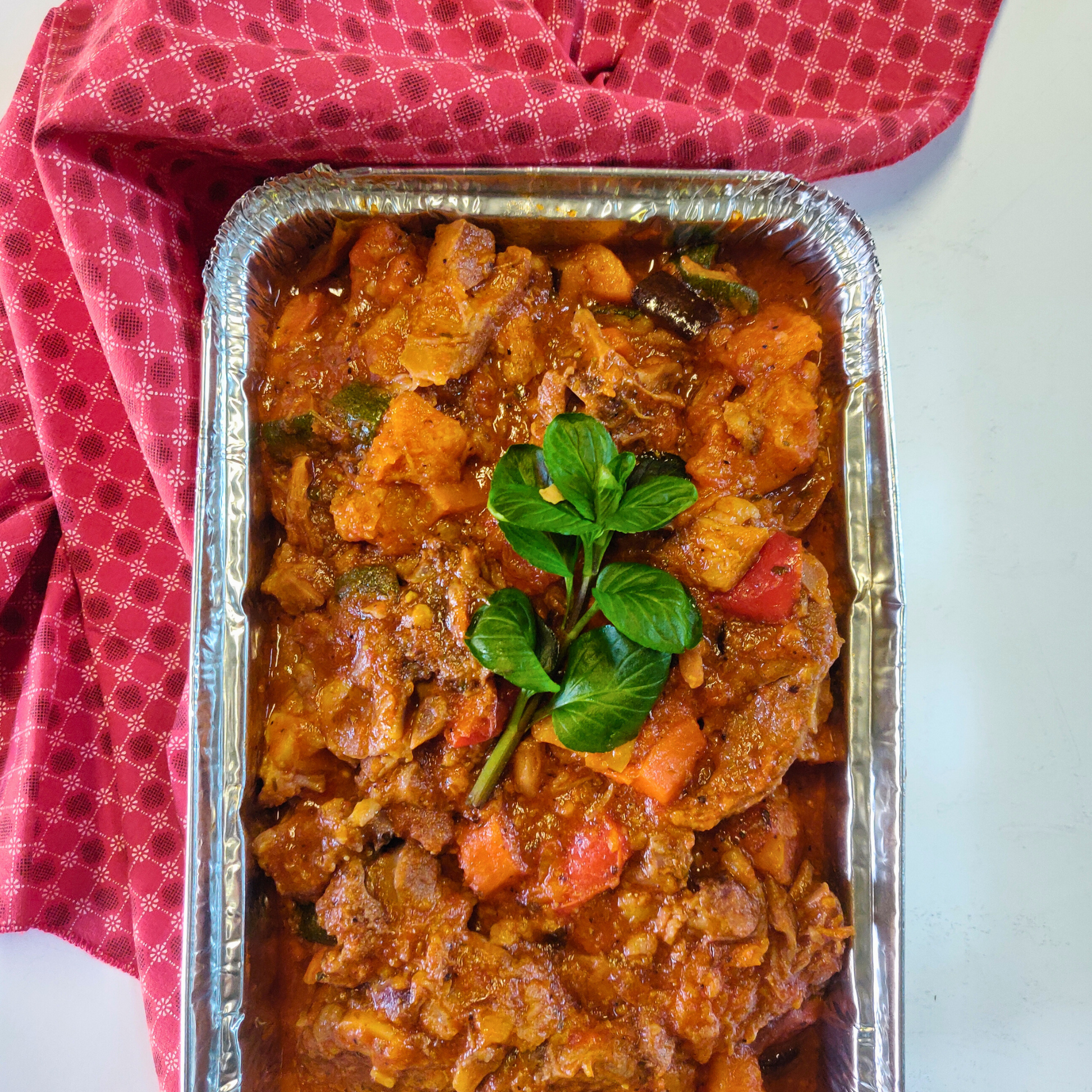 Lamb Neck, Lamb Knuckle, Sunflower Oil, Brinjal, Courgette, Butternut, Red Pepper, Onions, Tomato Puree, Basil Pesto, Salt, Pepper